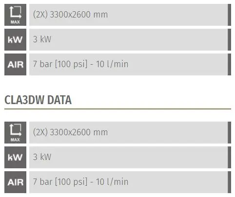 As an option, there is the CLA3DW model, which increases the vertical support surface on the metal frame of the racks, for two positions of 3700 x 2600mm sheets.
