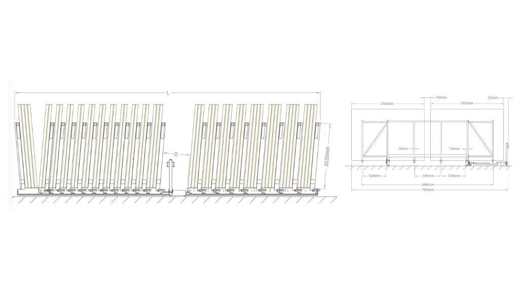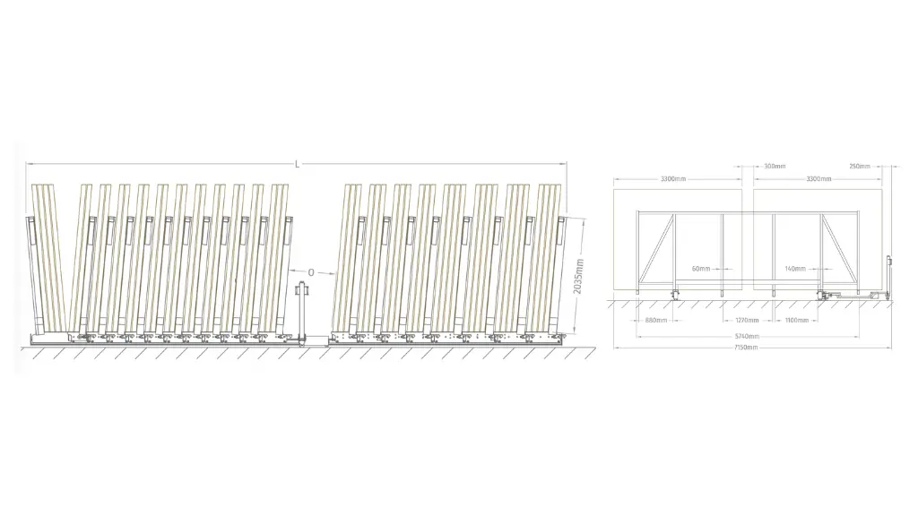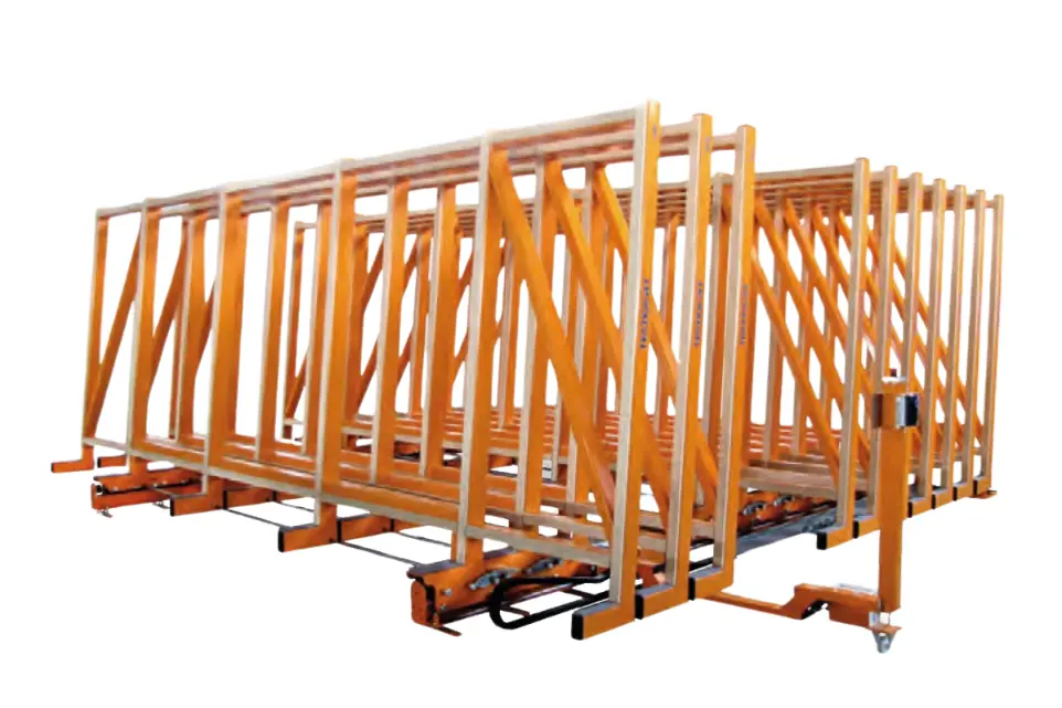 El CLA3D es un clasificador motorizado de alta eficiencia que permite almacenar hojas de vidrio en dos posiciones por caballete, optimizando el uso del espacio y aumentando la productividad del almacén.