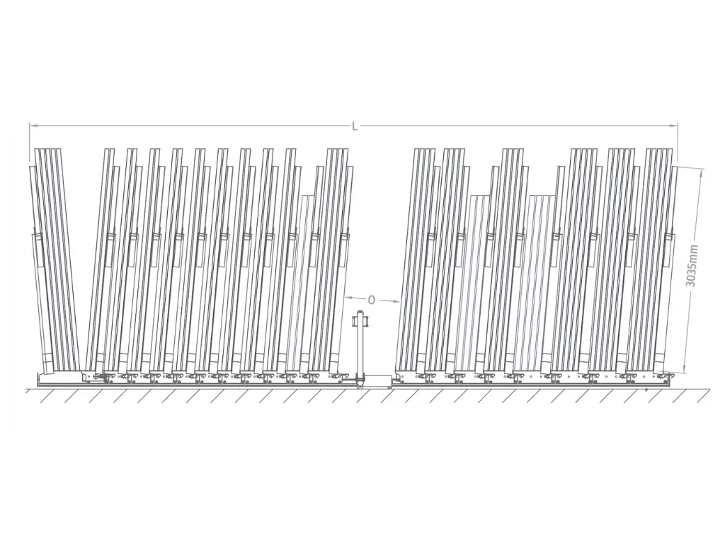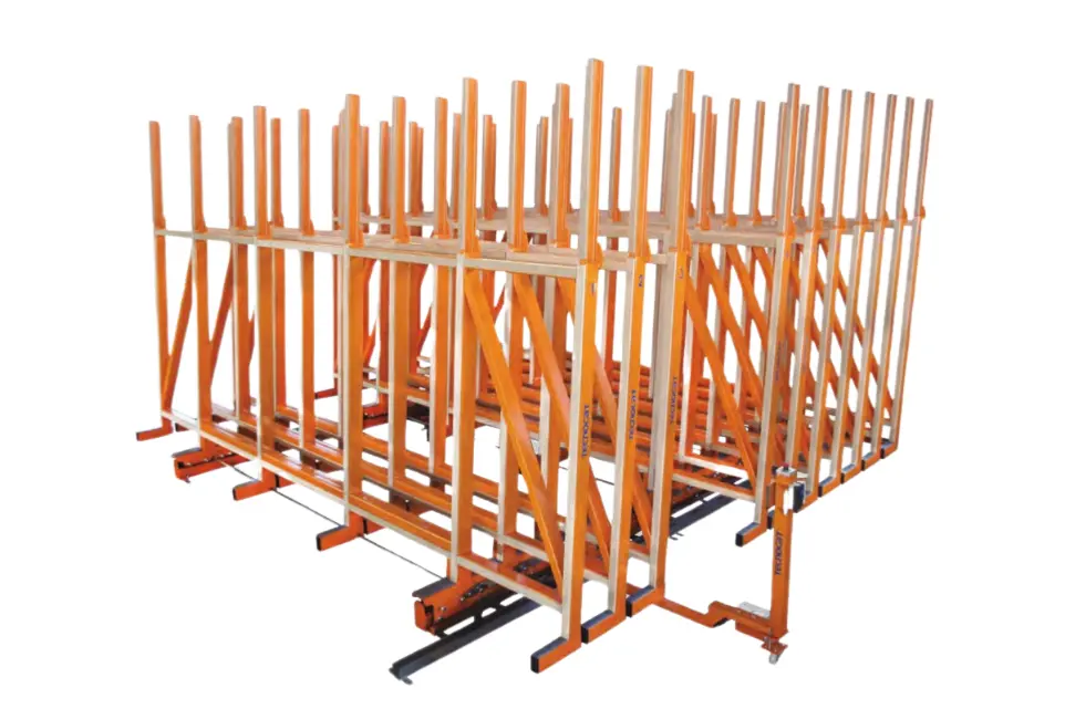 Diseñado para trabajar con grandes formatos, permite almacenar hojas de hasta 6100 mm o combinar dos hojas estándar en un mismo caballete, optimizando el uso del espacio sin comprometer la seguridad ni la accesibilidad.