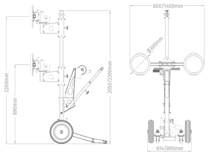 It is designed so that a single operator can handle loads of up to 80Kg (recommended) and two operators up to 200Kg of load.