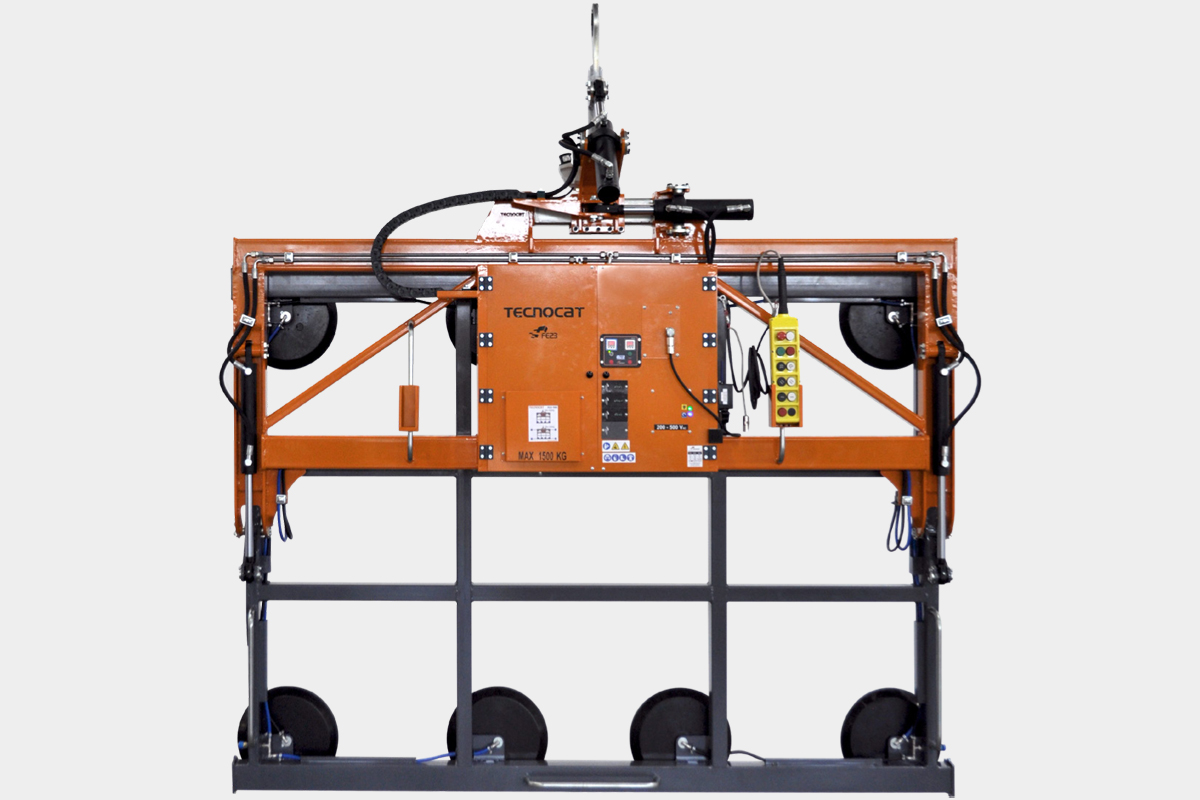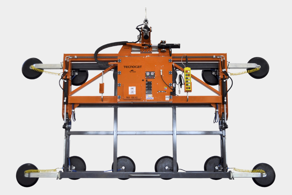 This equipment has a load capacity of up to 1,500 kg and can handle glass dimensions up to 6 x 3.21 meters. It includes extensions that provide an additional level of safety when handling large-format pieces. Optionally, the equipment can be equipped with a load leveling and tilting system, further enhancing efficiency in managing large glass panels.