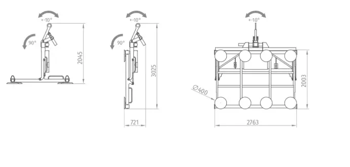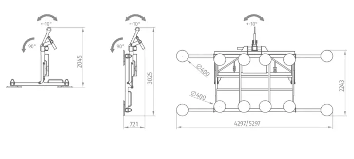 Tilting vacuum equipment with a motion range of 0º to 90º and electric power supply, specially designed for horizontal glass handling processes such as horizontal CNC machines, laminators, tempering furnaces, cutting tables, and more. Its quick and precise movement ensures ergonomic and efficient operation.