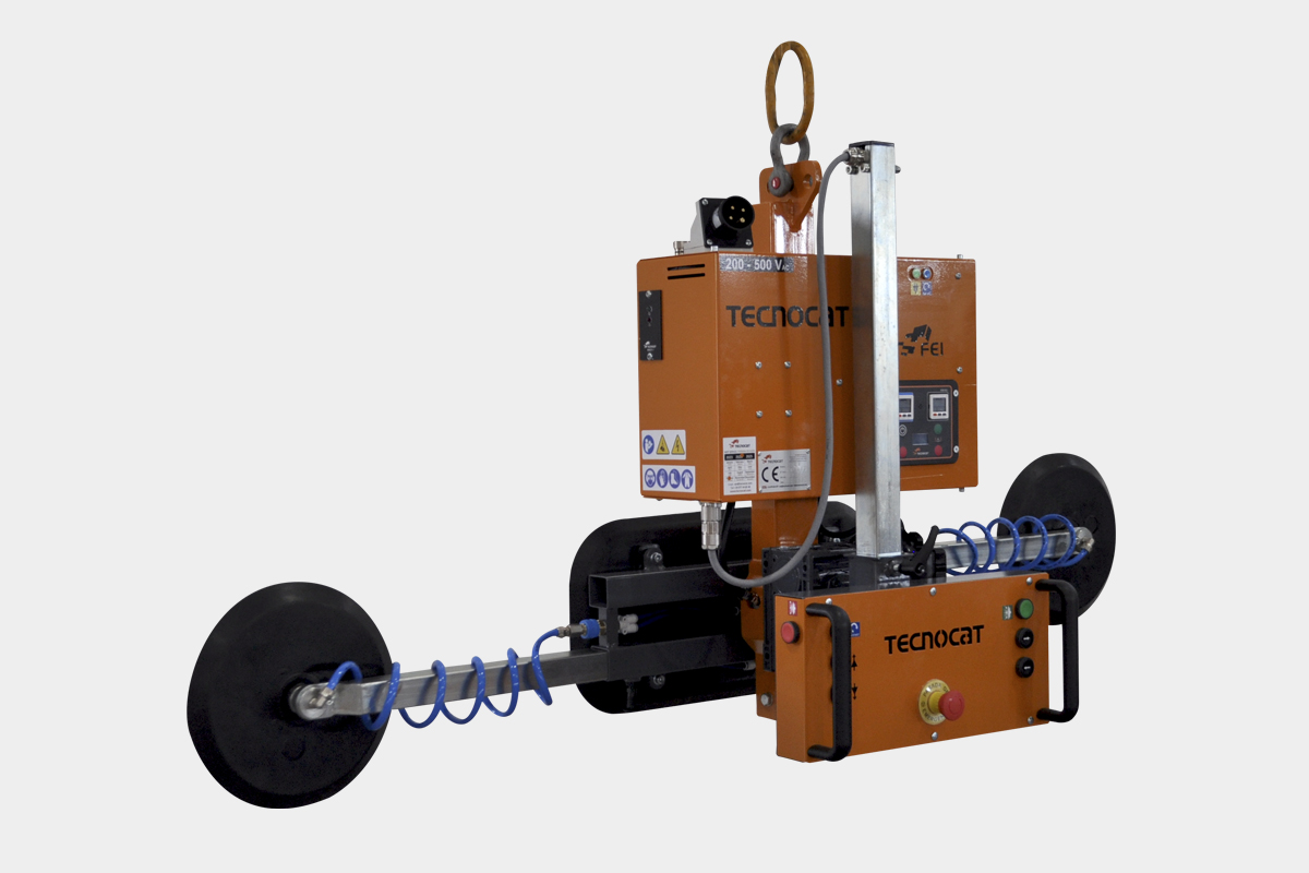 This equipment combines perfectly with TECNOCAT LIFTING SYSTEMS. It is possible to control the lifting and lowering movements of the hoist (fast and slow) from the suction cup controls.