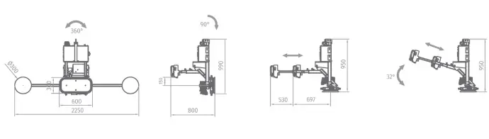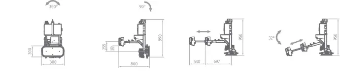 Electric operation, 360º rotation and 0-90º tilt with smooth and precise movements that facilitate effortless work for the operator.
