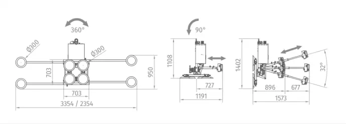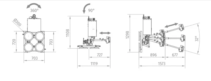 Electric operation, 360º rotation and 0-90º tilt with smooth and precise movements that facilitate effortless work for the operator.