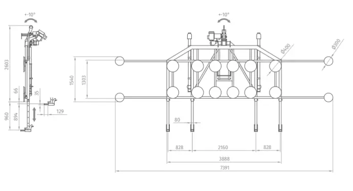 To ensure the safe handling of large-format pieces, the equipment is equipped with leveling and tilting systems that allow the load to be transported vertically, evenly, and with complete safety.