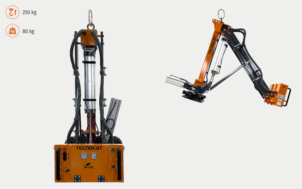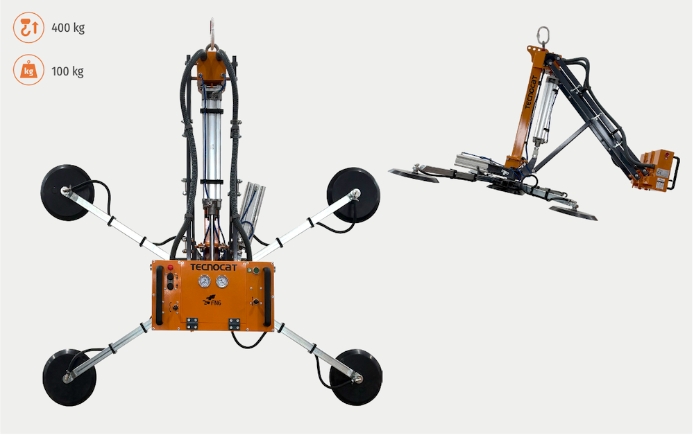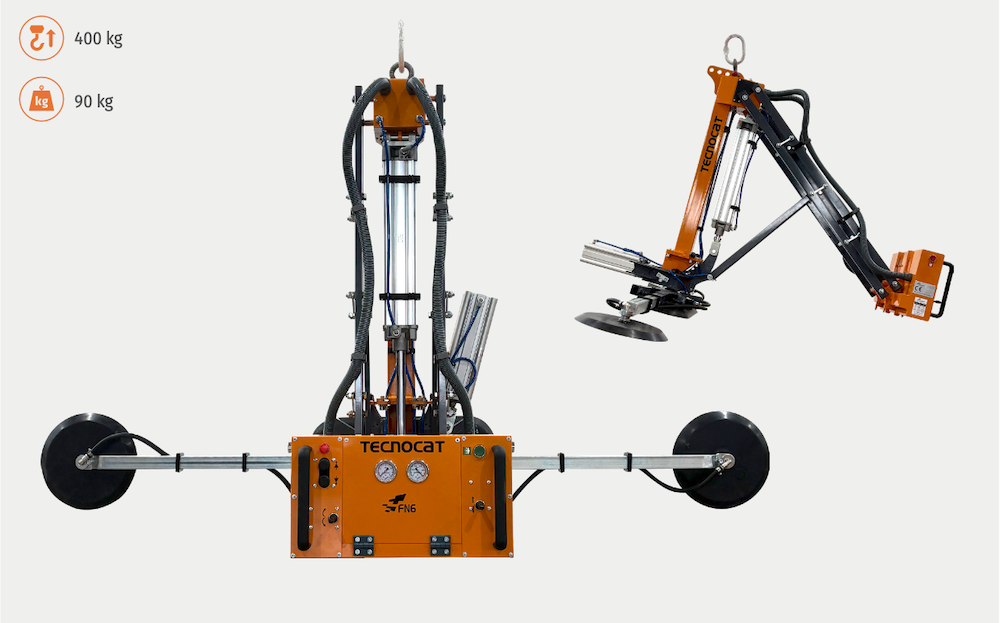 FACTORY SERIES brings together the TECNOCAT vacuum lifter models with features specially designed for factory work — that is, for production lines that process elements or devices where glass is the central material.