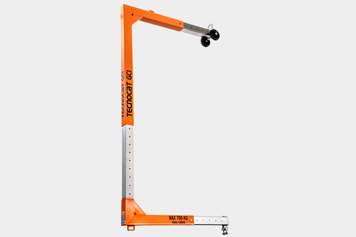 Hook system compatible with any Tecnocat suction cup, specially designed to overcome cornices and protrusions on-site, improving accessibility and safety during glass installation.