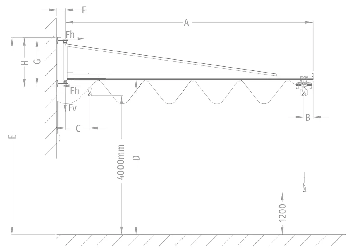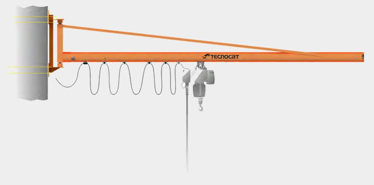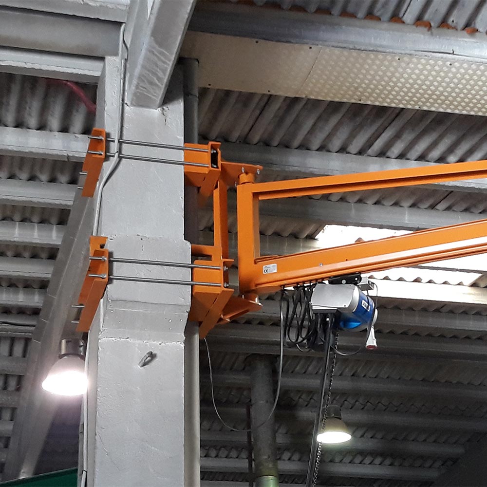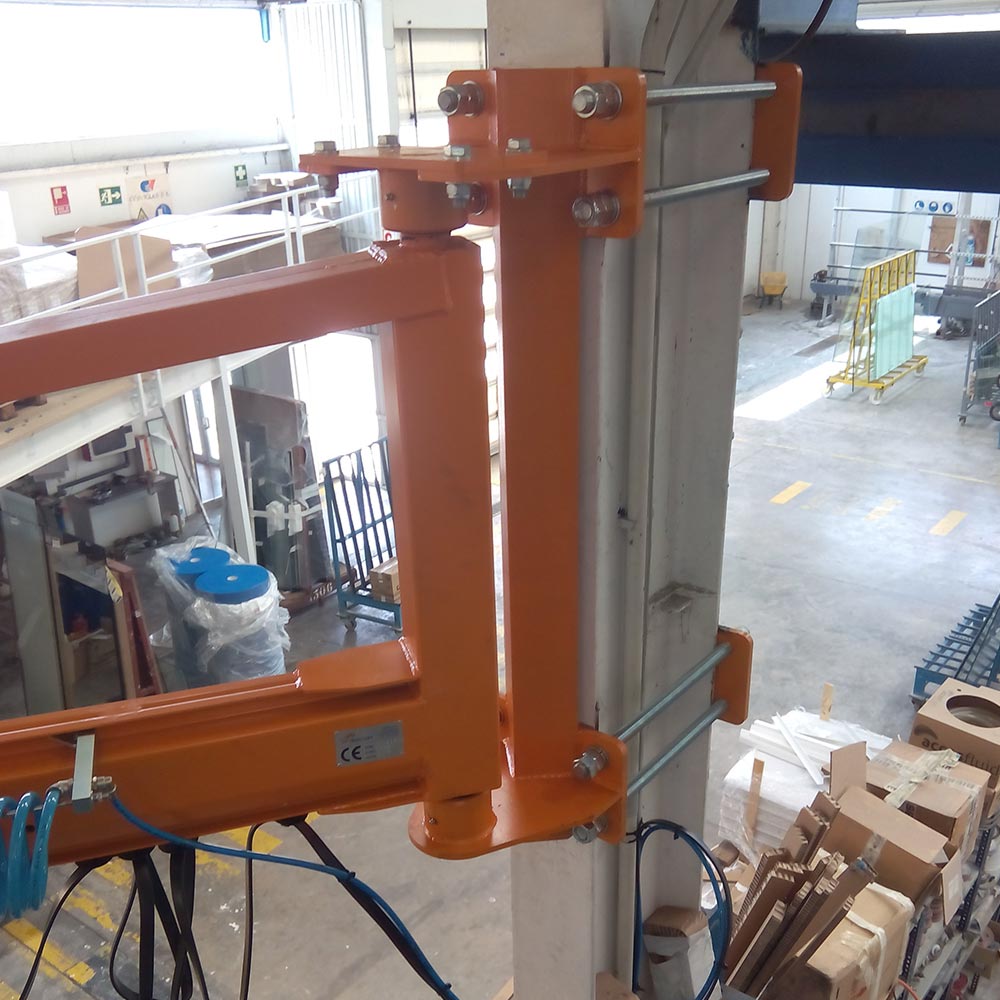 The installation of the jib crane can be carried out by means of different systems: direct anchoring to the wall, by welding on an existing metal profile, by means of brackets attached to an existing concrete column.
