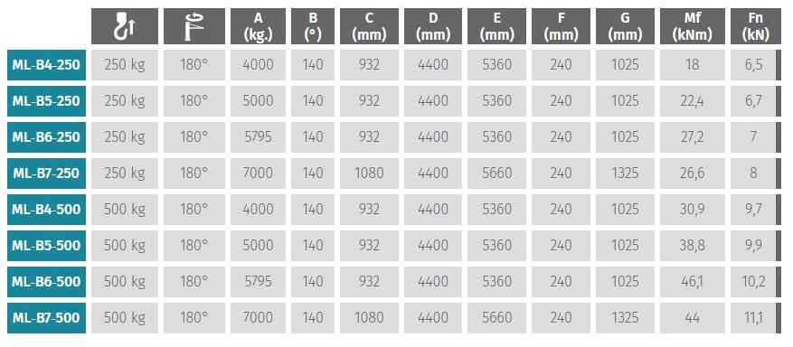ML-B equipment is a crane arm lifting system with load capacity up to 500Kg.