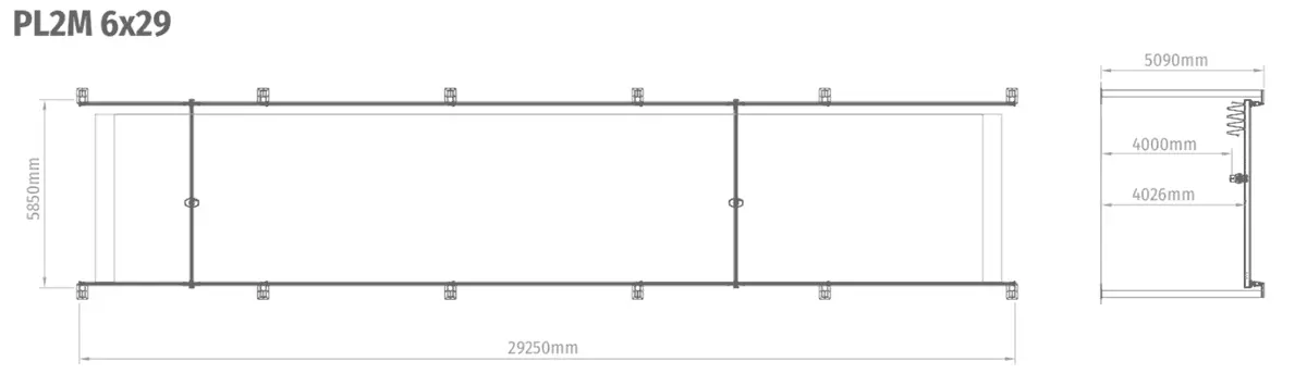 The PLM manual light bridge equipment is a lifting system composed by supports, longitudinal rails and mobile cross rail.