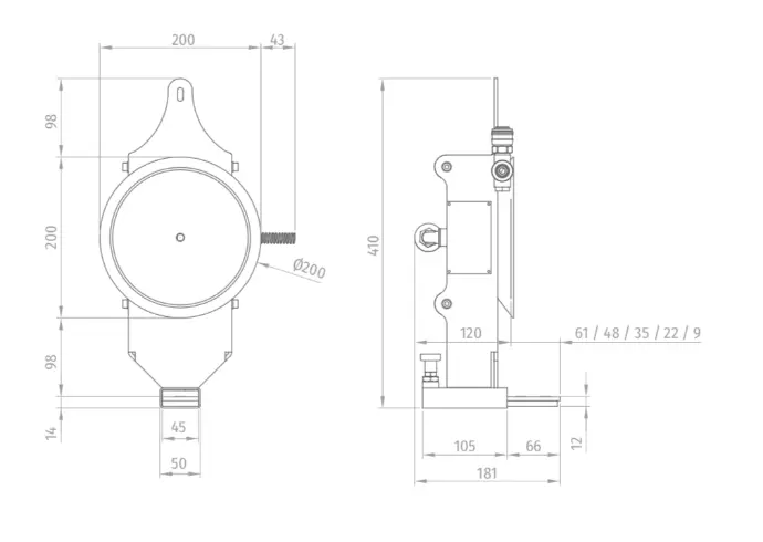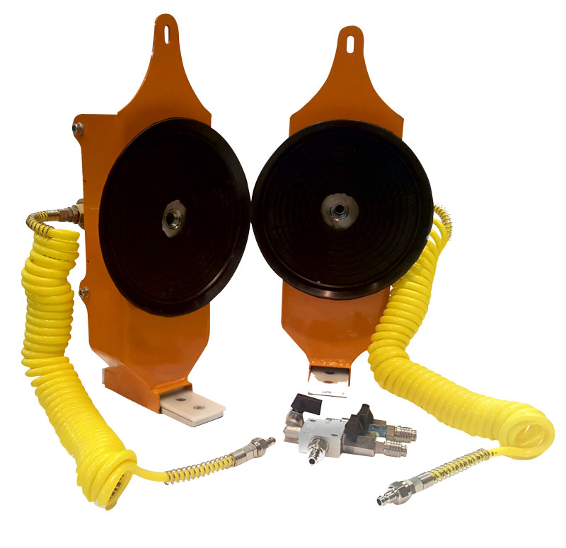 Each unit of the set of 2 has a Ø200mm vacuum cup (max lifting capacity 50kg) and an inferior support which will support from below the glasses of the insulated glass unit.