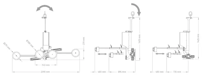 Two central vacuum cups provides great suction. Adding the extensions (model VN6-GB2+2) allows increasing the grip surface for larger sheets.