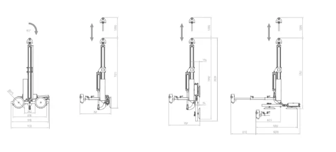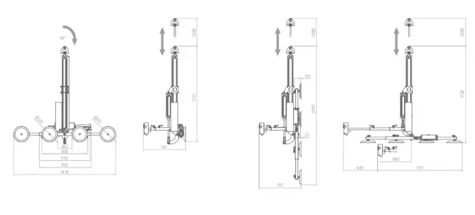 Light and compact equipment, indicated for vertical and horizontal glass handling processes, such as edger machines, vertical or horizontal CNC machines, laminate glass machines, tempering furnaces, horizontal assembly of doors and windows, cutting tables ...