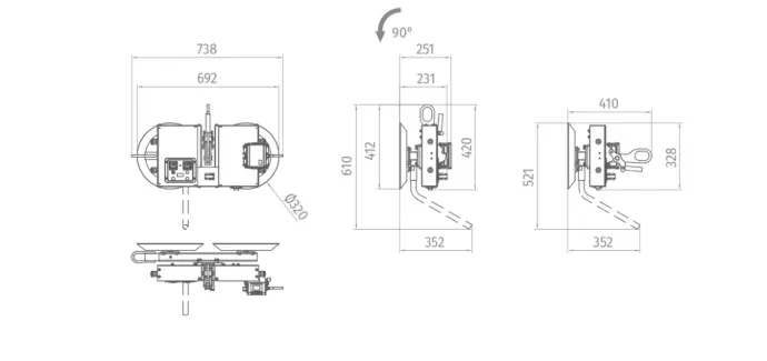 The small dimensions allow complex installations in very narrow places such as between facade and scaffolding.