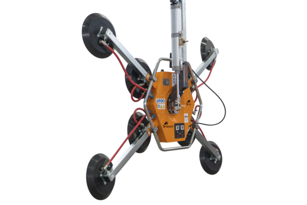 The XL1-600G is lightweight and compact, with high load capacity and battery operation. It has a double safety vacuum circuit for the handling and installation of glass on site, according to the EN-13155 standard.