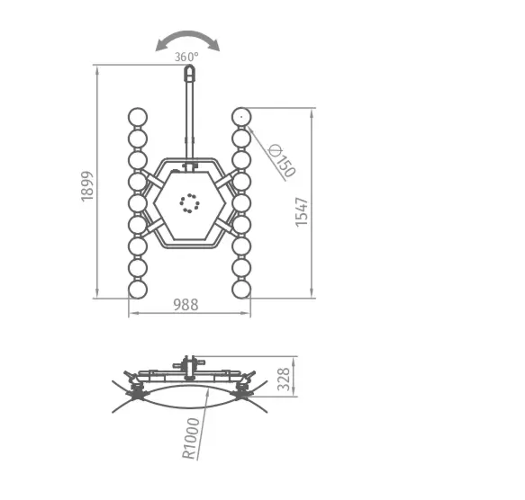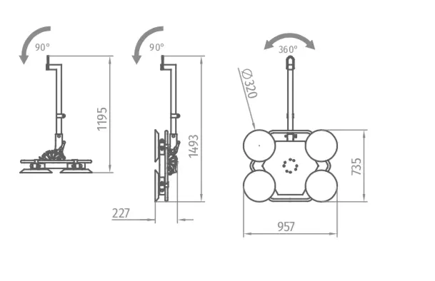 - C150-XL1 CURVED GLASS ARM 9+9 SUCTION CUPS Ø125 (270KG)