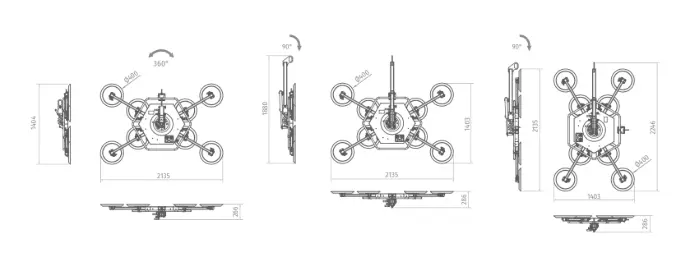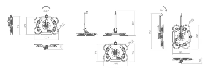 The central suction pads are configurable and can be quickly adapted to different sheet formats. Adding extensions (model XL3-1000G+4) allows to increase the gripping surface and capacity for larger sheets.