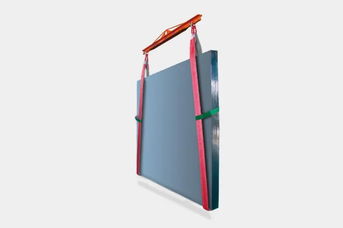 The set consisting of yoke + slings, is ideal for the transport and loading and unloading of glass packages or other materials with dimensions up to 3210 x 2600mm.