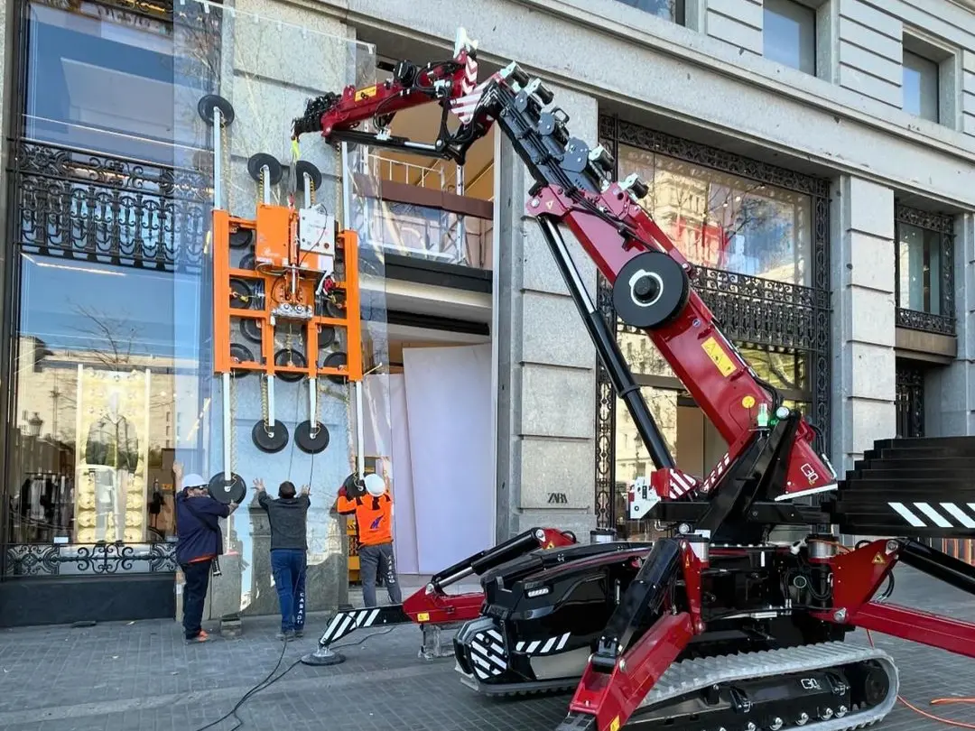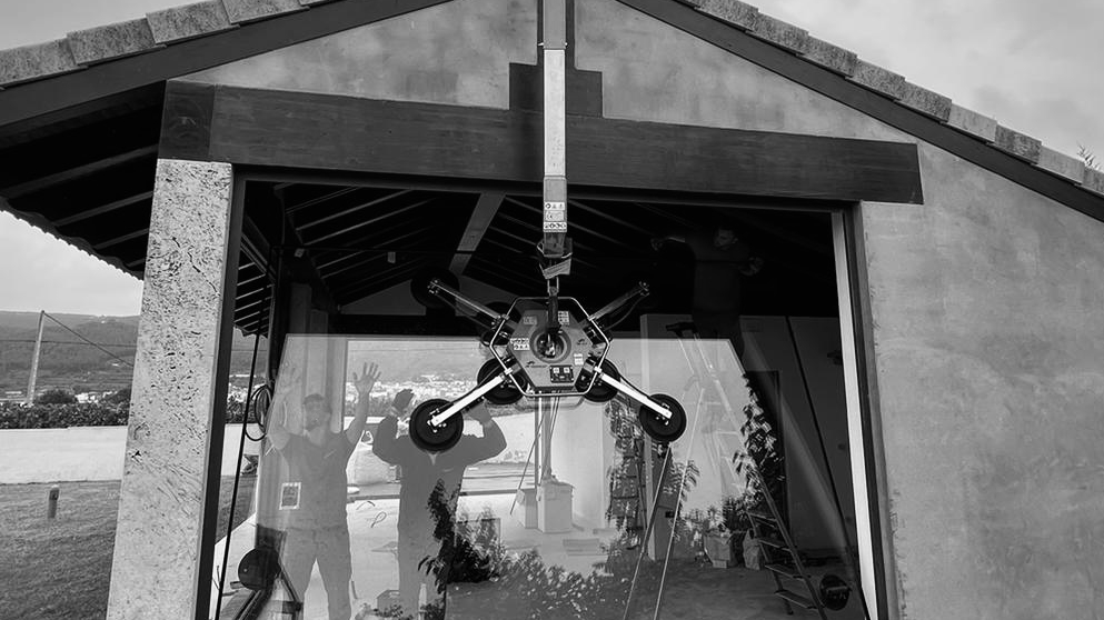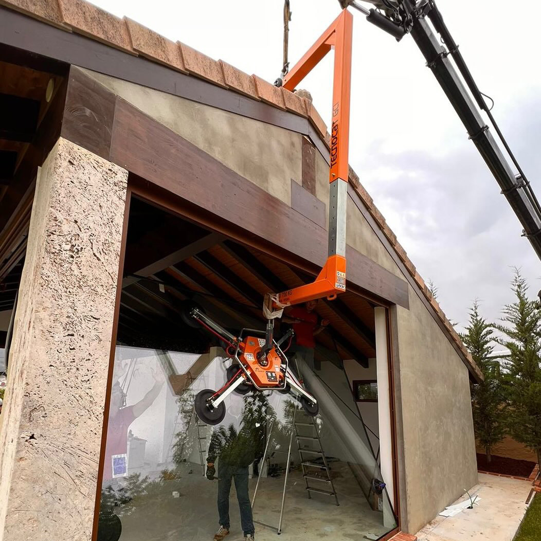 Equipos compactos de ventosas con gran capacidad de carga, ideales para instalación de vidrio en obra.