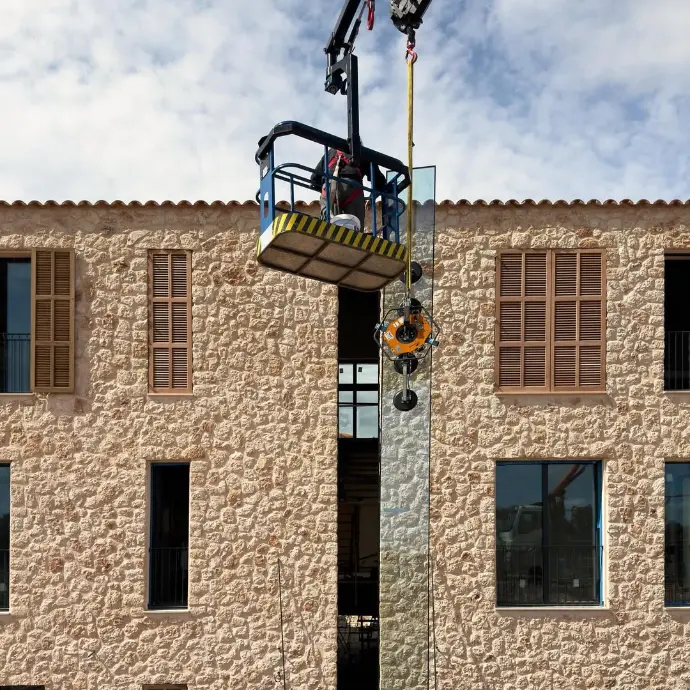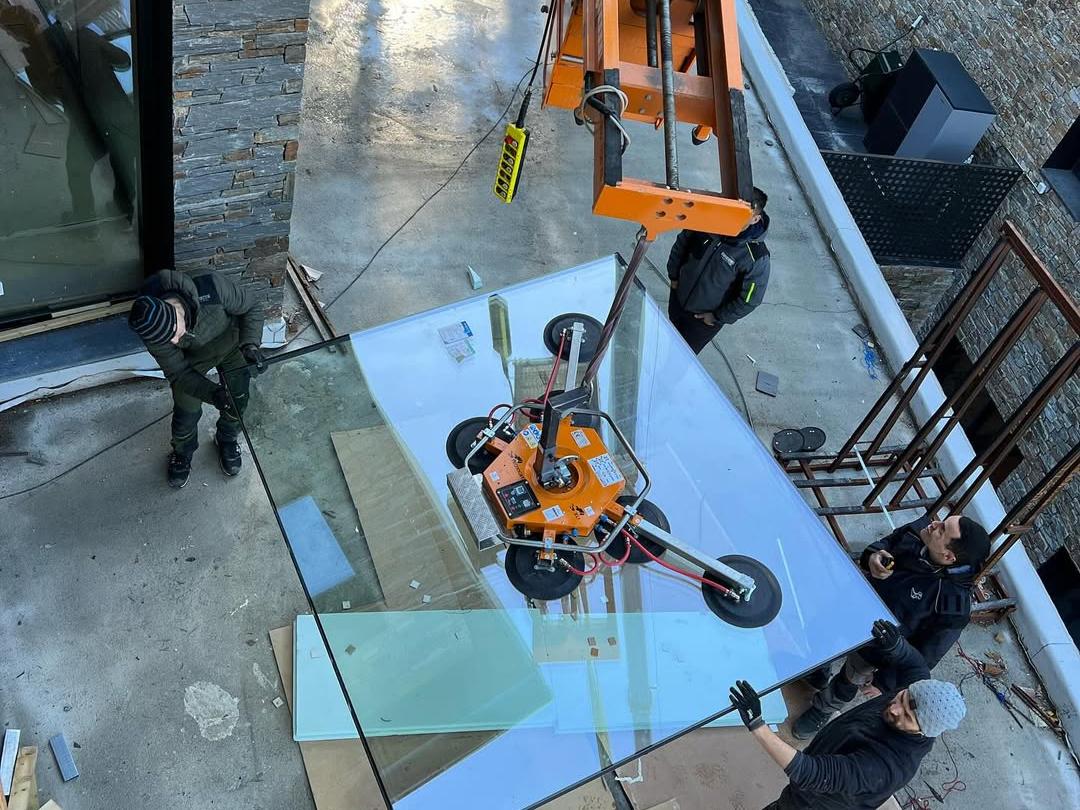 Mover, instalar y manipular vidrio directamente en obra.