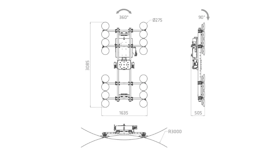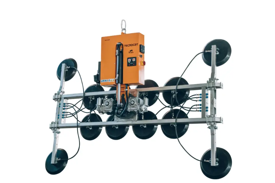Además, dispone de doble circuito de vacío independiente conforme a la normativa EN-13155, garantizando la máxima seguridad durante la manipulación del vidrio en obra.