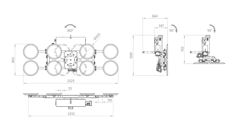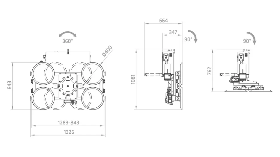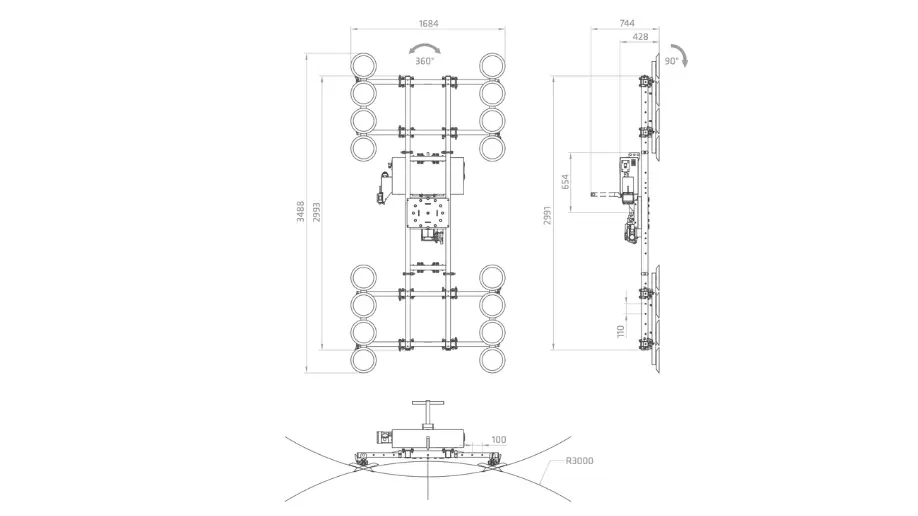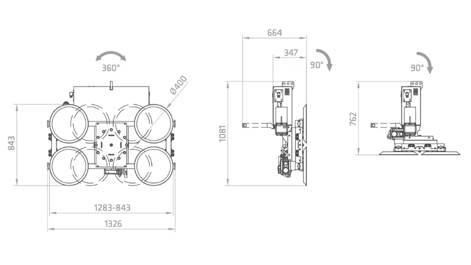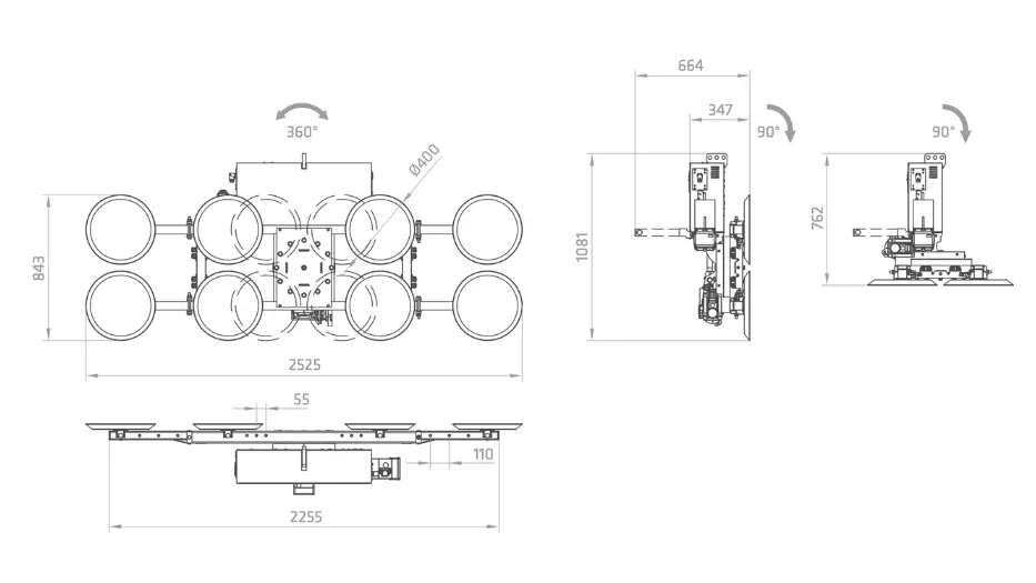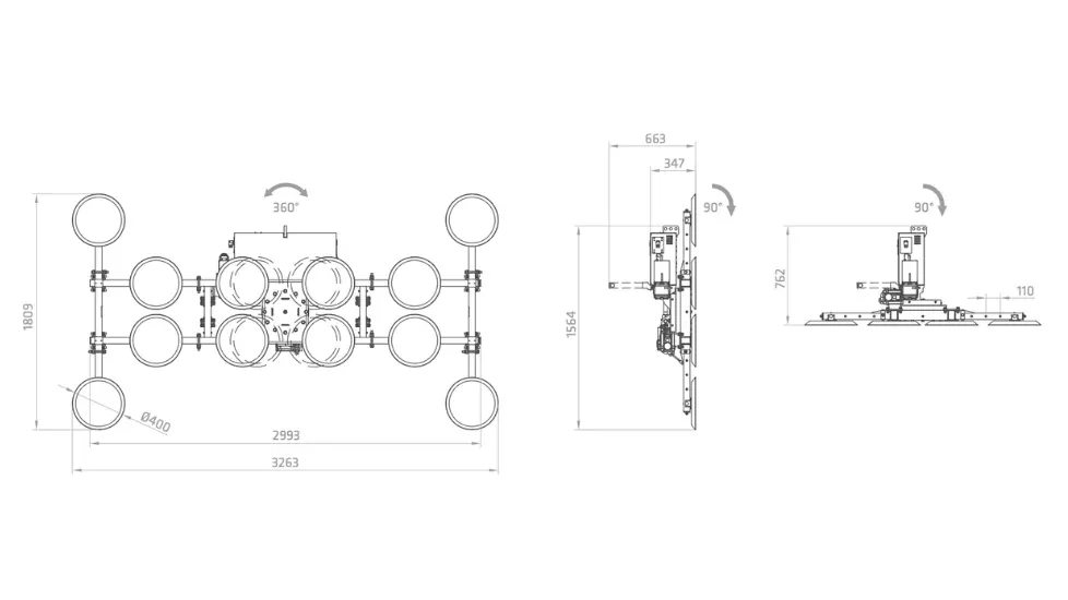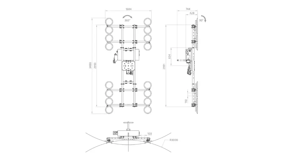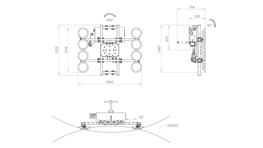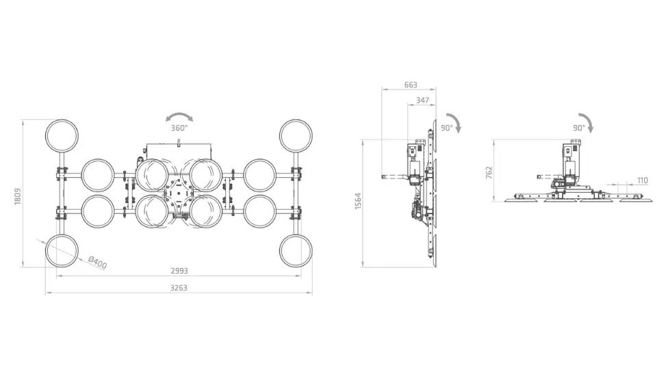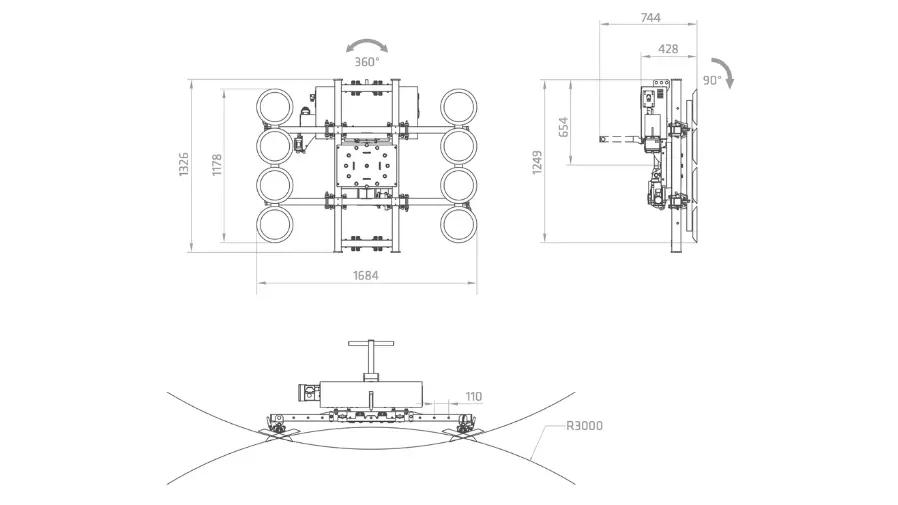 Incorpora movimientos completamente motorizados de rotación y basculación, facilitando una manipulación fluida, precisa y segura durante todo el proceso de instalación.