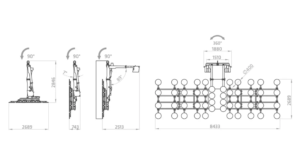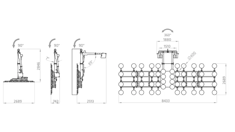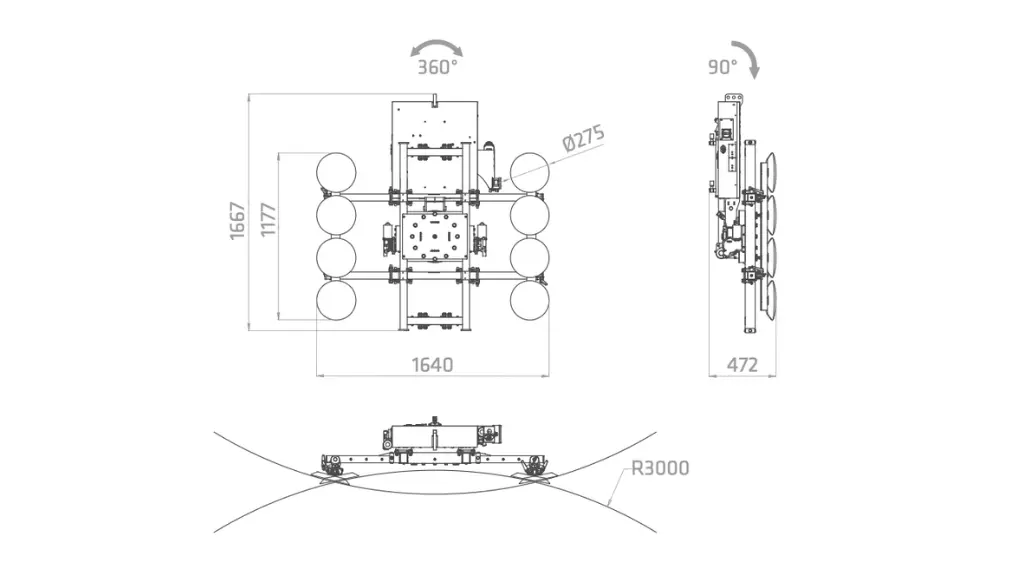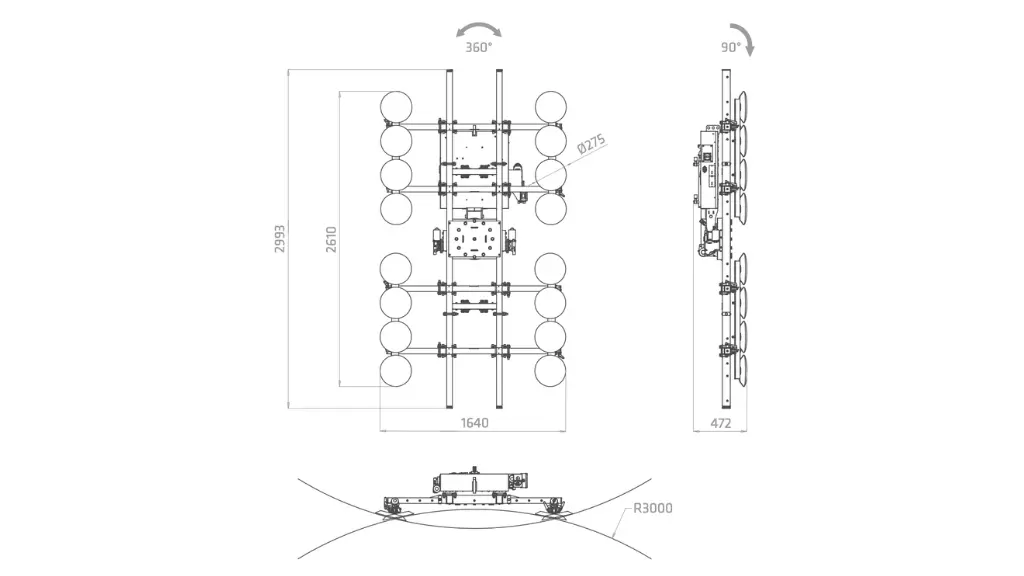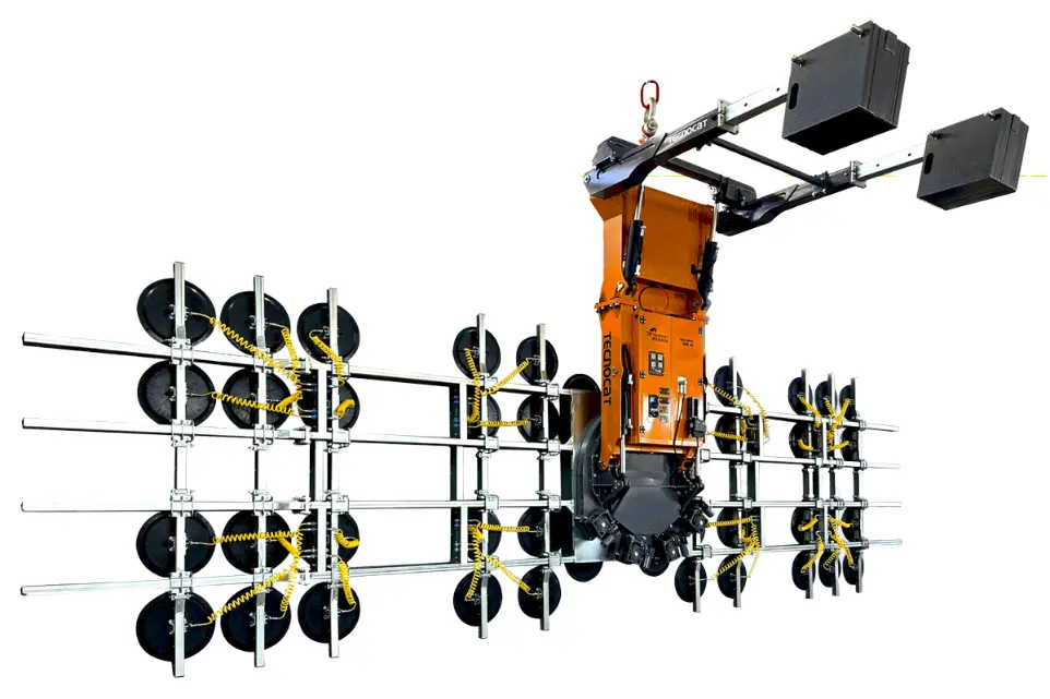 Su diseño modular permite configurar el equipo según las necesidades del proyecto, adaptando la superficie de agarre y la capacidad de carga mediante diferentes configuraciones de parrillas y ventosas.