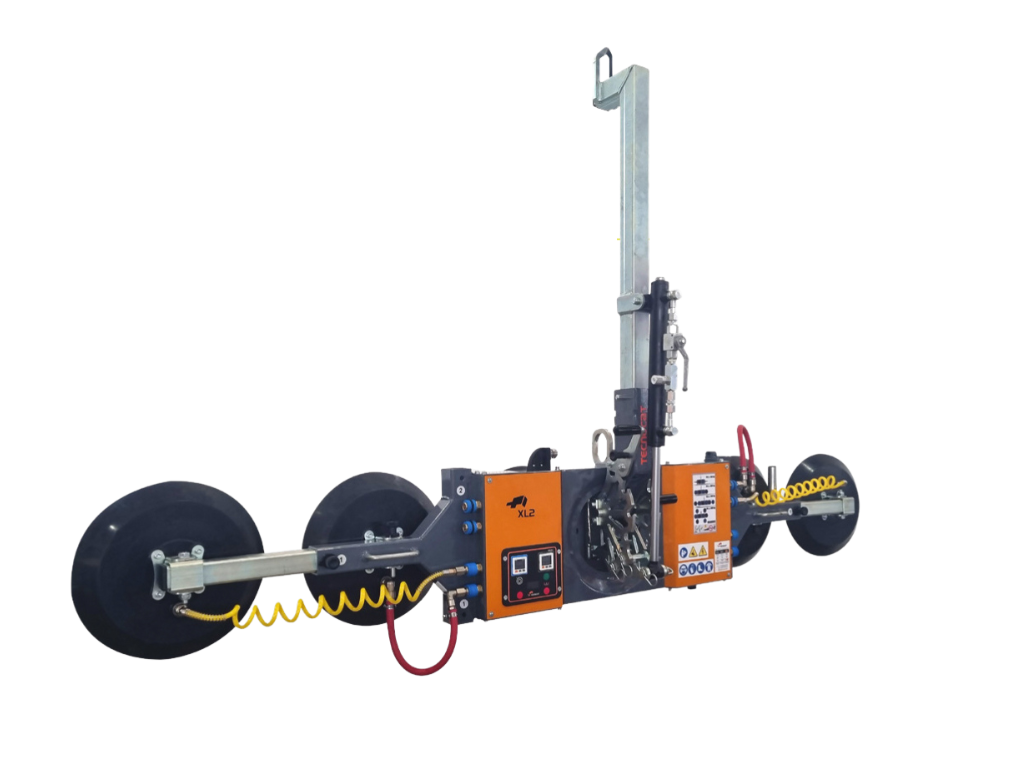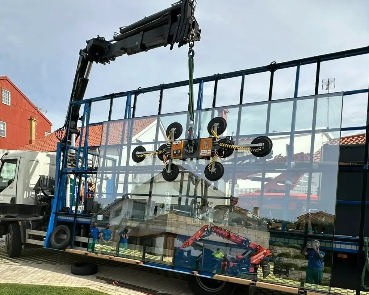 Su sistema modular permite adaptar rápidamente la superficie de agarre a distintos formatos de vidrio, ampliando la capacidad de carga cuando el proyecto lo requiere.