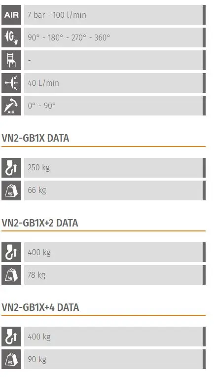 It works only with pressurized air with a very comfortable 360° manual rotation and pneumatic tilting 0° - 90° are fast and precise to speed up the operator's work and increase efficiency.