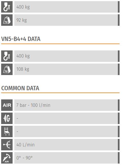 Four central plates provide great suction, which allows loading up to 400Kg. Adding the extensions (model VN5-B4+4) allows increasing the grip surface for larger sheets.
