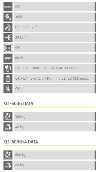 The XL1-600G is lightweight and compact, with high load capacity and battery operation. It has a double safety vacuum circuit for the handling and installation of glass on site, according to the EN-13155 standard.