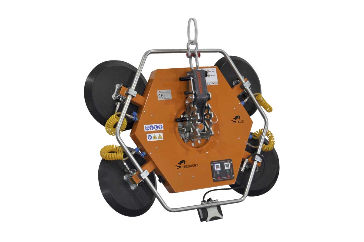 El equipo XL3-1000G es ligero y compacto, con gran capacidad de carga y funcionamiento a batería. Dispone de doble circuito de vacío de seguridad para la manipulación e instalación de vidrio en obra, según la norma EN-13155.