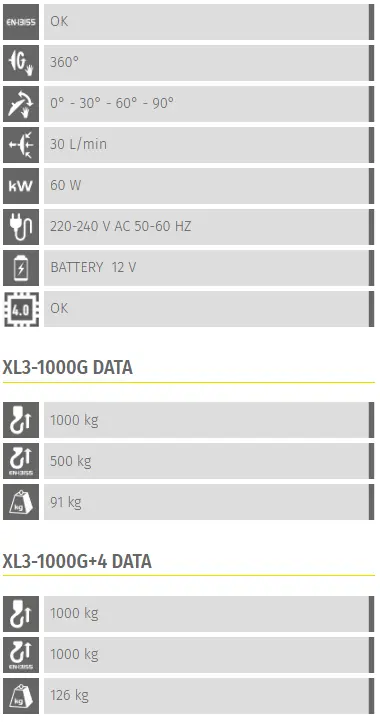 The XL3-1000G equipment is light and compact, with a high load capacity and battery operation. It has a double safety vacuum circuit for the handling and installation of glass on site, according to the EN-13155 standard.